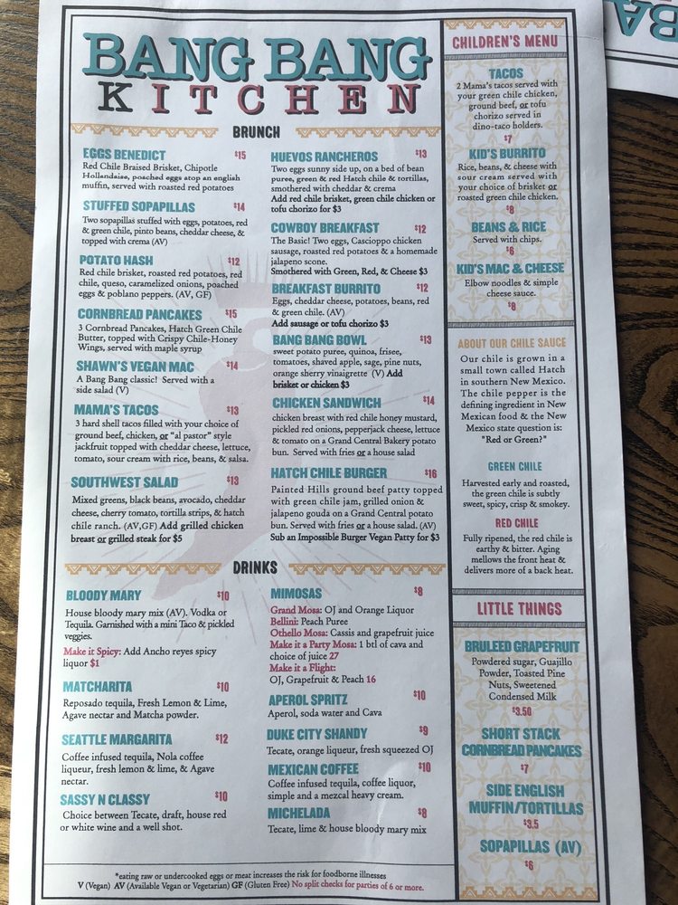 Welcome to Bang Bang Kitchen, a culinary gem nestled in Seattle’s vibrant Othello neighborhood. This restaurant effortlessly blends the rich flavors of New Mexican cuisine with hints of TexMex and Southern influences, creating a truly unique dining experience. Whether you're craving their mouthwatering tacos, enchiladas with Christmas sauce, or the indulgent cornbread pancakes for brunch, Bang Bang Kitchen has options for everyone, including extensive vegan and vegetarian choices.